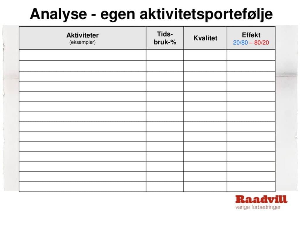Mange opplever å få gjort mye mer om tiden er knapp og oppgavene mange. Det er neppe tilfeldig fordi knapp tid krever at vi må prioritere og velge bort det som kan vente til senere. I lengden kan vi ikke alltid planlegge med «for lite tid», men vi kan trekke lærdom av erfaringene vi gjorde oss og systematisere disse. Modeller for hvordan vi kan prioritere og for hva vi må gjøre for å få til etterlevelse er enkle og lar seg forholdsvis enkelt etterleve. Derfor er det et paradoks at så mange møter ikke tilfredsstiller seg de enkleste oppskrifter for effektivitet